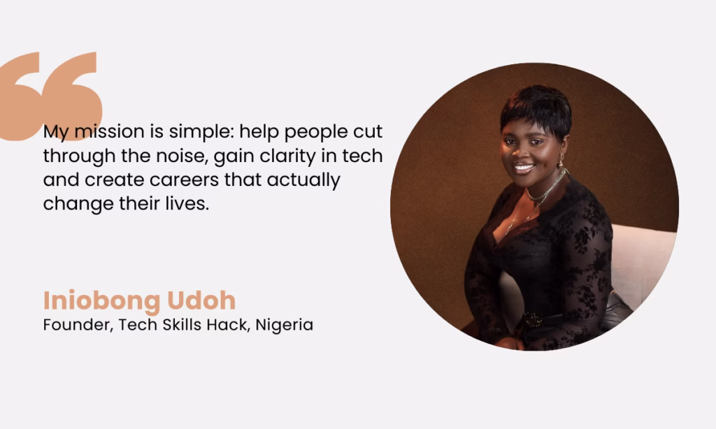 Iniobong Udoh is the founder of Tech Skills Hack, a social enterprise and community aimed at helping people break into tech by learning real digital skills like web design, digital marketing, UX, and more.